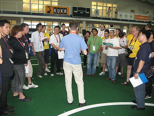 Zwei Stunden nach dem Finale der Tribots in der MidSize-Liga traten die Brainstormers 2D gegen Wright Eagle aus China an.