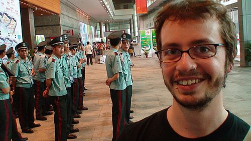 Ein besonderes Abenteuer ist das Befüllen der Taucherflasche gewesen. Nicht das wir jetzt mit Unterwasserrobotern spielen, aber der neue, von der Firma Harting entwickelte Kickmechanismus wird mit sehr hohem Luftdruck betrieben. Und da es verboten ist, gefüllte Taucherflaschen im Flugzeug zu befördern, musste das Auffüllen hier geschehen. Also musste die Flasche nach Shanghai gebracht werden, um sie dort zu befüllen. Im Vorfeld haben wir natürlich schon Kontakt zu Tauchcentern aufgenommen, die vereinbarten Termine haben sich jedoch zerschlagen. So ist improvisiert worden und neue Luftressourcen sind angezapft worden. Vor allem hat man mit der Flasche die Blicke vieler Chinesen auf sich gezogen, sie muss wohl an eine Bombe erinnert haben.